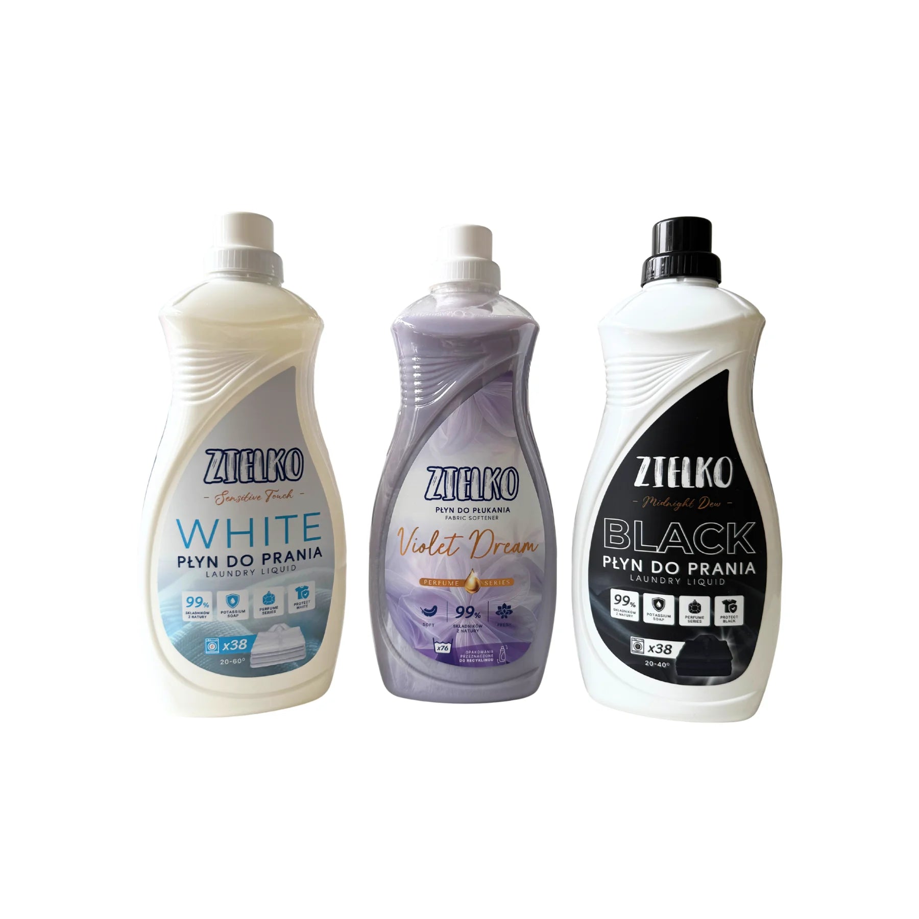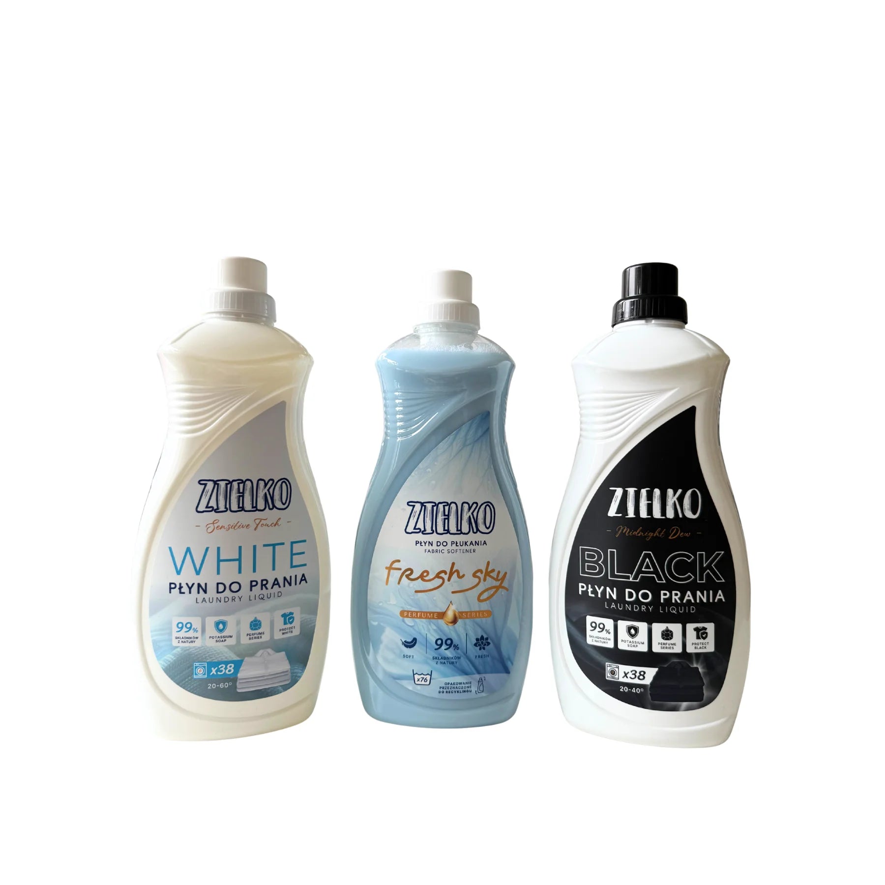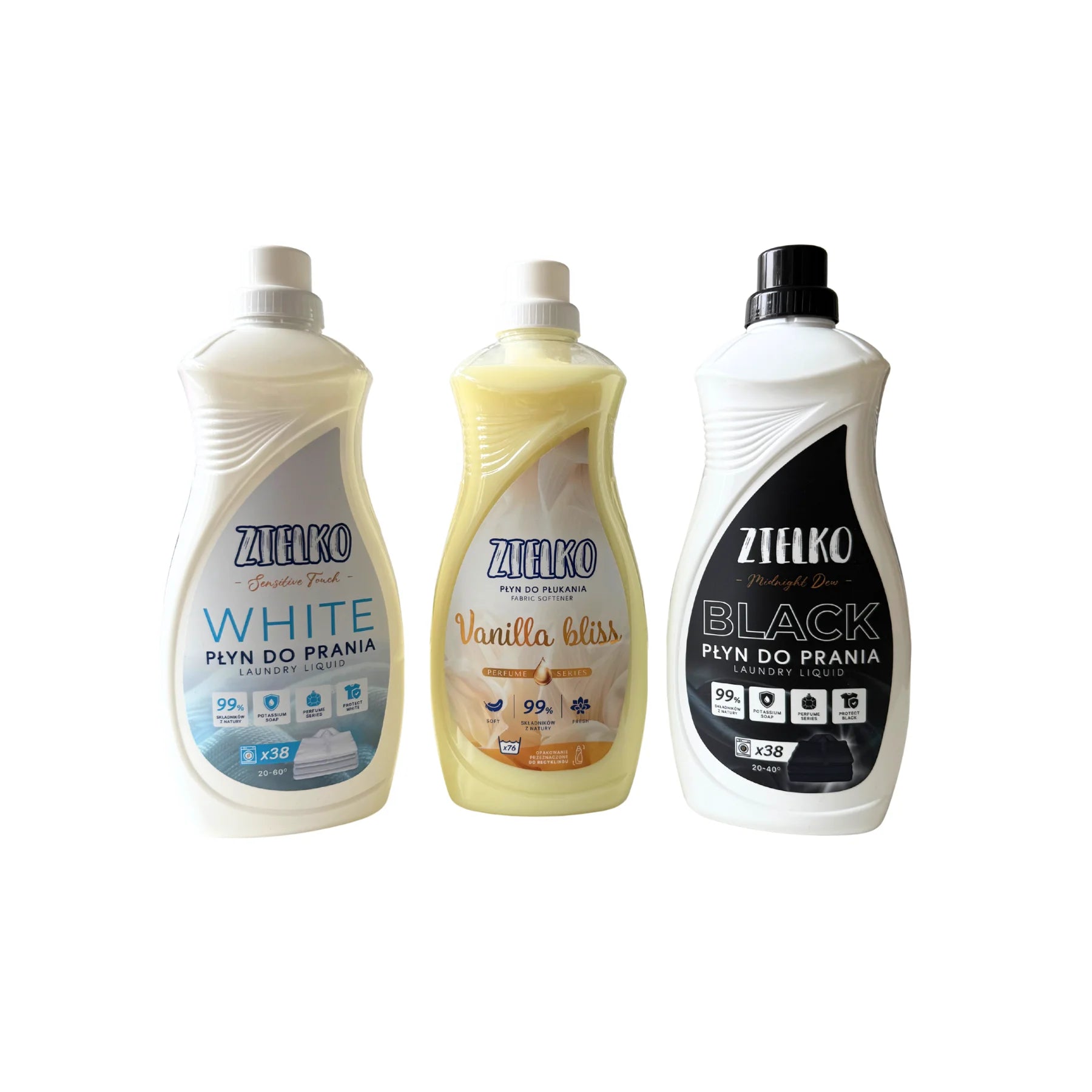 ZIELKO Wasmiddel Set Zwart & Wit + Wasverzachter (3×1,52 L)